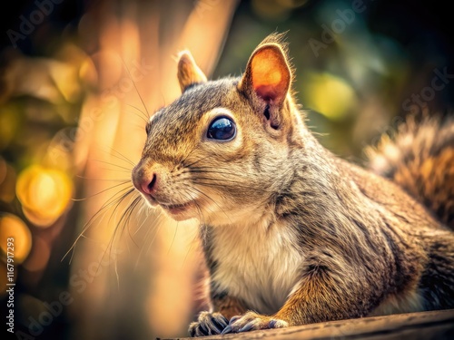 Obraz premium A charming vintage close-up: a squirrel's profile, captured in backyard...