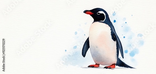 Obraz premium A charming watercolor of a gentoo penguin on a soft icy background.
