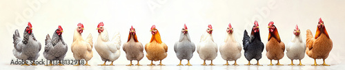Fototapeta premium A charming watercolor-style image of colorful chickens on a light backdrop,...