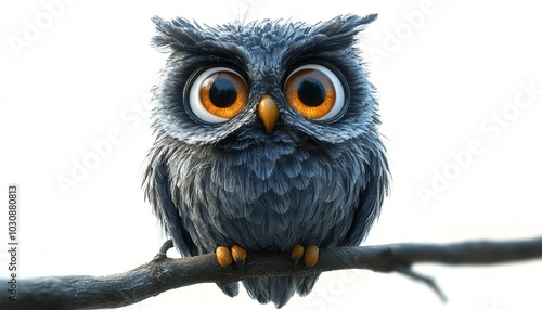 Fototapeta premium A charming, whimsical owl perched on a branch, showcasing its large,...