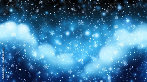 Fototapeta premium A charming winter backdrop filled with delicate snowflakes gently falling against a deep blue night sky. Perfect for enhancing seasonal greetings and promoting holiday themes in various designs
