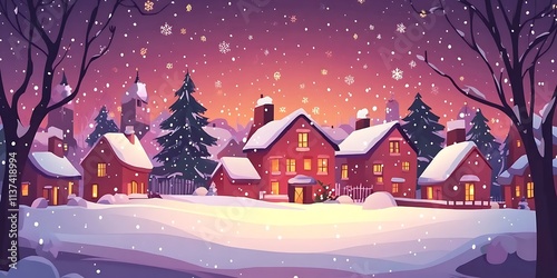 © Evalva786, Fototapeta premium A charming winter village scene perfect for Christmas and holiday greeting cards, websites, and social media posts