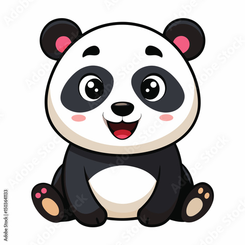 © Sanzida, Naklejka premium A cheerful baby panda with a wide smile sits with white background