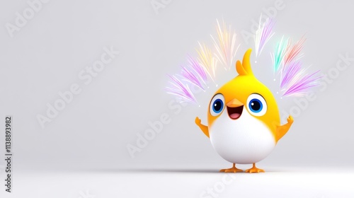 Obraz premium A cheerful cartoon bird with colorful sparks around it.