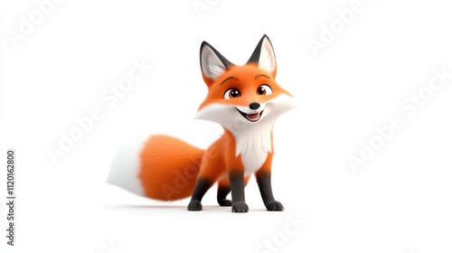 © Edo, Obraz premium A cheerful cartoon fox with a bushy tail and bright expression.