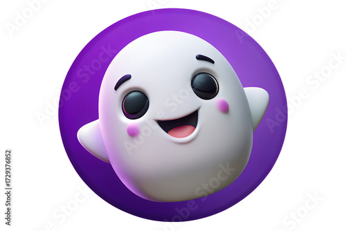 Fototapeta premium A cheerful cartoon ghost with rosy cheeks against a vibrant purple circular...
