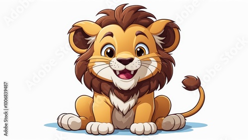 Fototapeta premium A cheerful cartoon lion with a friendly expression, sitting playfully.