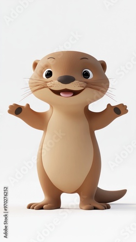 © BerkahStock, Naklejka premium A cheerful cartoon otter with a friendly expression, standing with arms outstretched.