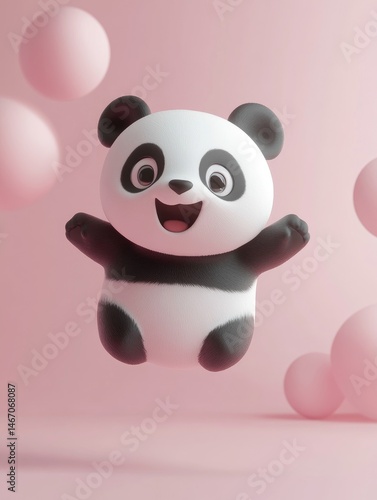 Fototapeta premium A cheerful, cartoon panda character in a whimsical setting.