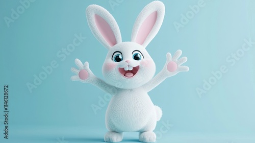 Obraz premium A cheerful cartoon rabbit with big ears and a friendly smile, posing with open arms.