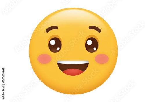 © twilight mist, Fototapeta premium A cheerful, cartoon-style emoticon displays a wide, joyful expression against a plain white background.