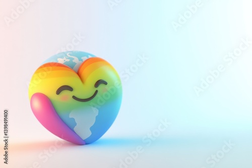 Fototapeta premium A cheerful Earth-shaped heart with rainbow colors embraces the globe, symbolizing love for our planet.