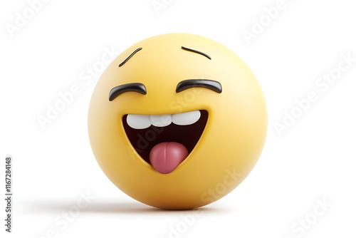 Fototapeta premium A cheerful emoji with a big smile and a playful expression, conveying happiness and fun.