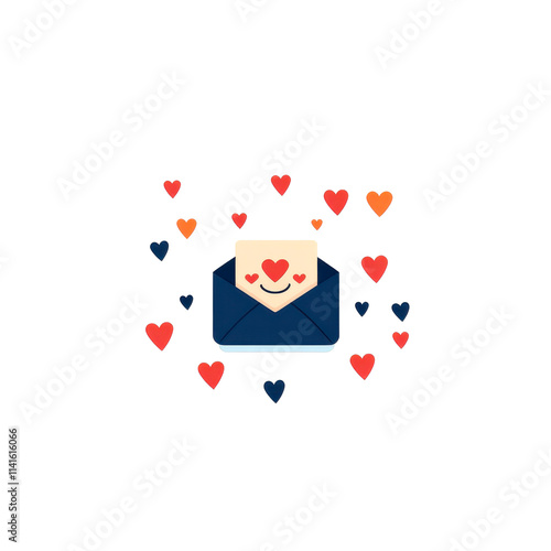 © F-STUDIO, Obraz premium A cheerful envelope surrounded by colorful hearts, symbolizing love and affection in communication.