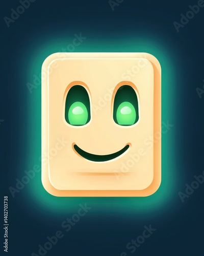 © Thirasak, Fototapeta premium A cheerful flat art style power socket icon with glowing green eyes and a smiling face design perfect for user interfaces and app designs.