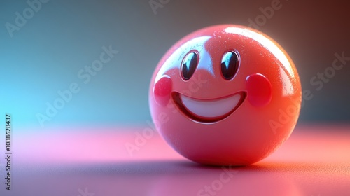 Fototapeta premium A cheerful, glossy red ball with a smiling face.