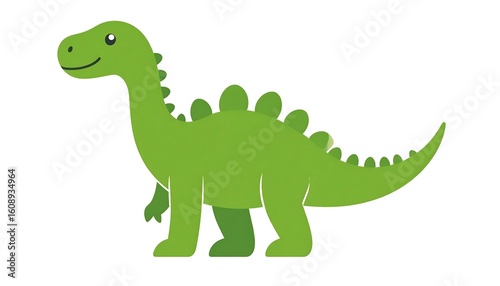 © tola, Obraz premium A cheerful green cartoon dinosaur, side profile, simple design