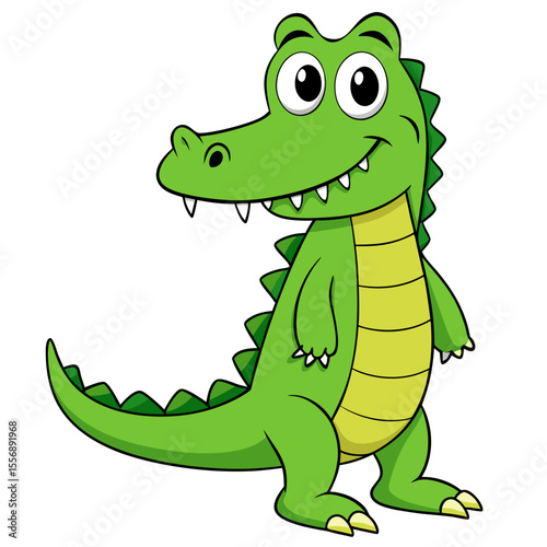 Naklejka premium A cheerful green crocodile, standing and smiling confidently, is captured in...