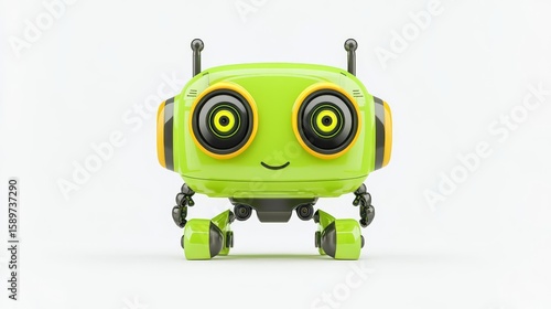 Fototapeta premium A cheerful green robot with large eyes and an engaging smile, showcasing a friendly and innovative design.