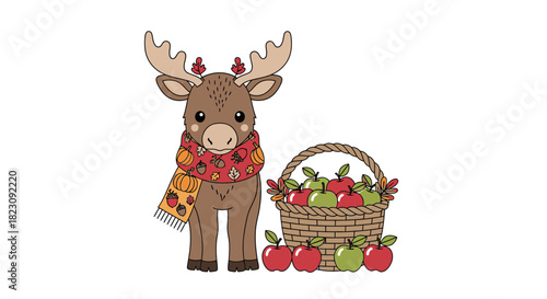 © Jangkrik, Naklejka premium A cheerful hedgehog wearing a leaf hat and holding a small bundle of corn, smiling.