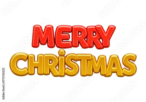 © ArtStock, Fototapeta premium A cheerful merry christmas text isolated on transparent background with bold red and gold lettering for festive greetings and holiday celebrations