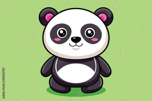 Naklejka premium A cheerful panda character smiles joyfully, surrounded by a bright green backdrop, a cartoon character Cute panda