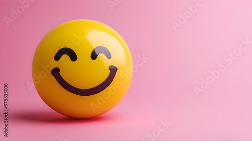 Fototapeta premium A cheerful yellow smiley face on a pink background, symbolizing happiness and positivity.