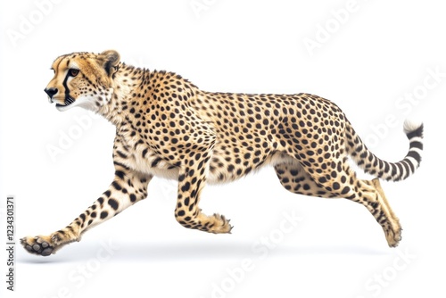 Fototapeta premium A cheetah runs freely on a plain white background