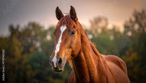 © Apel, Fototapeta premium A chestnut horse with a white blaze