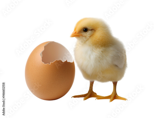 Fototapeta premium A chick emerging from an egg, isolated on a transparent background