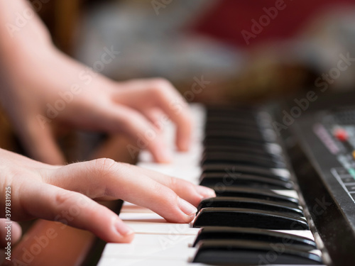 Obraz premium a child's hand playing piano