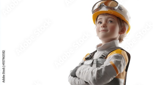 © MAGNIFIER, Fototapeta premium A child wearing an engineering suit, 3D illustration, isolated on white background