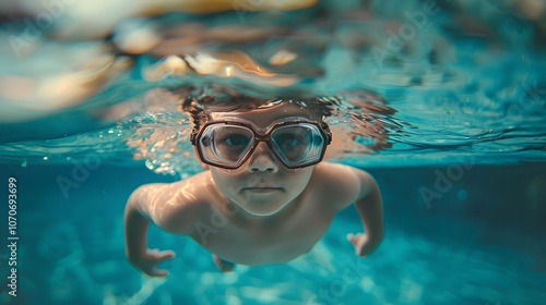 Naklejka premium A Child Wearing Swimming Goggles Underwater