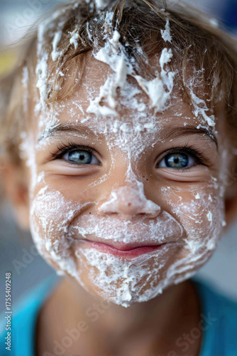© Emanuel, Fototapeta premium A child with ice cream all over the face smiling happily