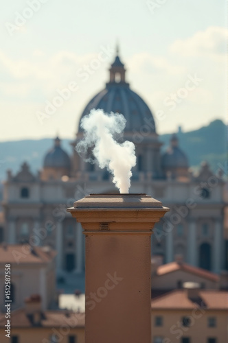 © Fotograf, Fototapeta premium A chimney puffing out smoke from a building