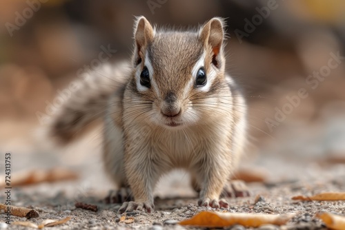 Obraz premium a_chipmunk_walks_across_some_dirt