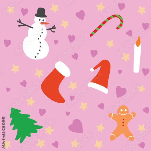Fototapeta premium a christmas background pattern with pink background and red sock object