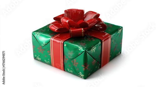 © Talha, Obraz premium A Christmas present wrapped gift 3D illustration with a bow isolated on white and transparent background.