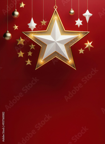 © Carlostock, Fototapeta premium A Christmas star on a vertical background, part of a Christmas arrangement, designed as a wallpaper