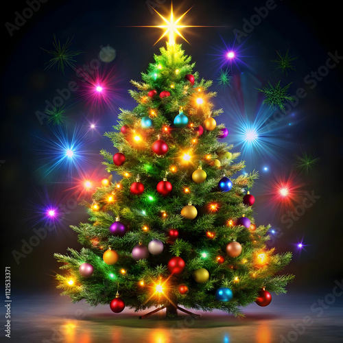 © Huzaifa, Obraz premium a christmas tree with twinkling multicolored light