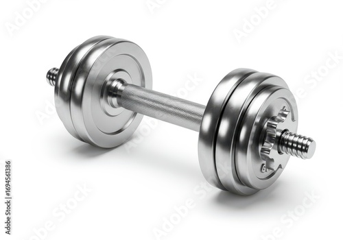 Naklejka premium A chrome dumbbell, rendered with precision, sits elegantly against a simple...