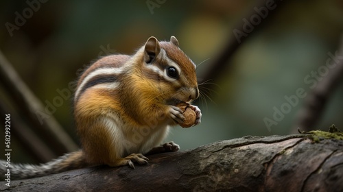 Obraz premium A chubby chipmunk munching on a nut while perched on a tree branch Generative AI