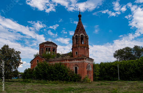 © Adsloboda, Naklejka premium A church in the midst of dense grass. An abandoned church in Tatarstan, Russia.