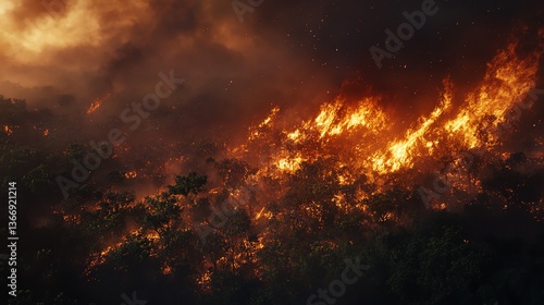 © Guruh, Naklejka premium A cinematic view of a firestorm devouring a lush fores
