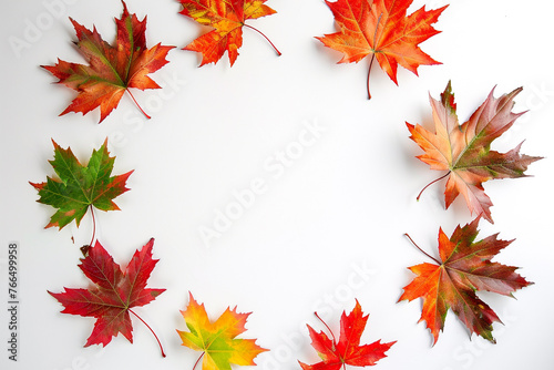 Fototapeta premium A circle of maple leaves on a white backgroundisolated on solid white...
