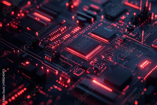 © somchai20162516, Obraz premium A circuit board pattern with glowing lines and digital elements in a dark theme