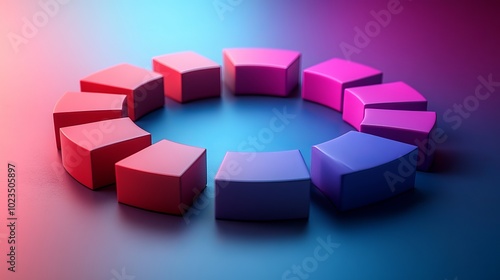 © ratcha, Obraz premium A circular arrangement of colorful, curved blocks on a gradient background.