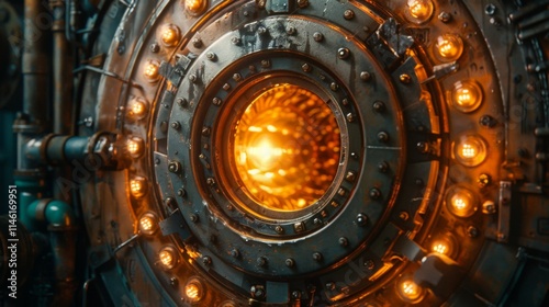 © Nusrat, Obraz premium a circular metal object with a light shining through it