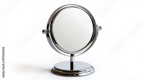Fototapeta premium A circular vanity mirror with adjustable angles, isolated on a white background,