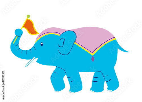 © AtelierFluffyCat, Fototapeta premium A circus elephant waving a flag